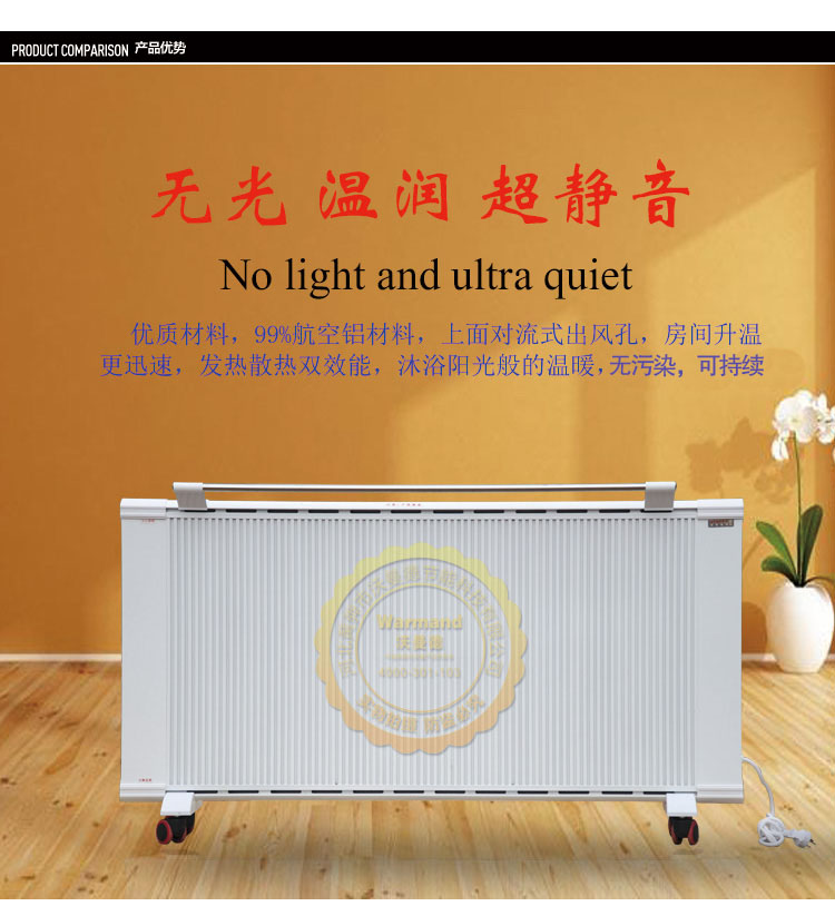 優(yōu)勢(shì)二:舒適!碳晶遠(yuǎn)紅外電暖器使用中無“小太陽”光照污染問題,無空調(diào)或者熱風(fēng)機(jī)噪音、揚(yáng)塵問題。